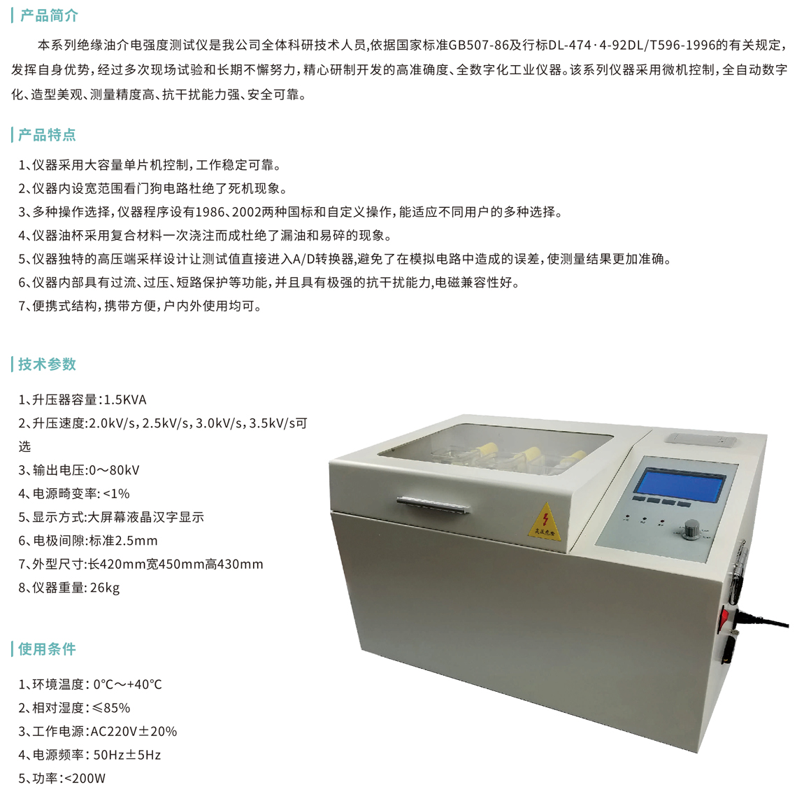 本系列絕緣油介電強(qiáng)度測(cè)試儀是我公司全體科研技術(shù)人員,依據(jù)國(guó)家標(biāo)準(zhǔn)GB507-86及行標(biāo)DL-474·4-92DL/T596-1996的有關(guān)規(guī)定,